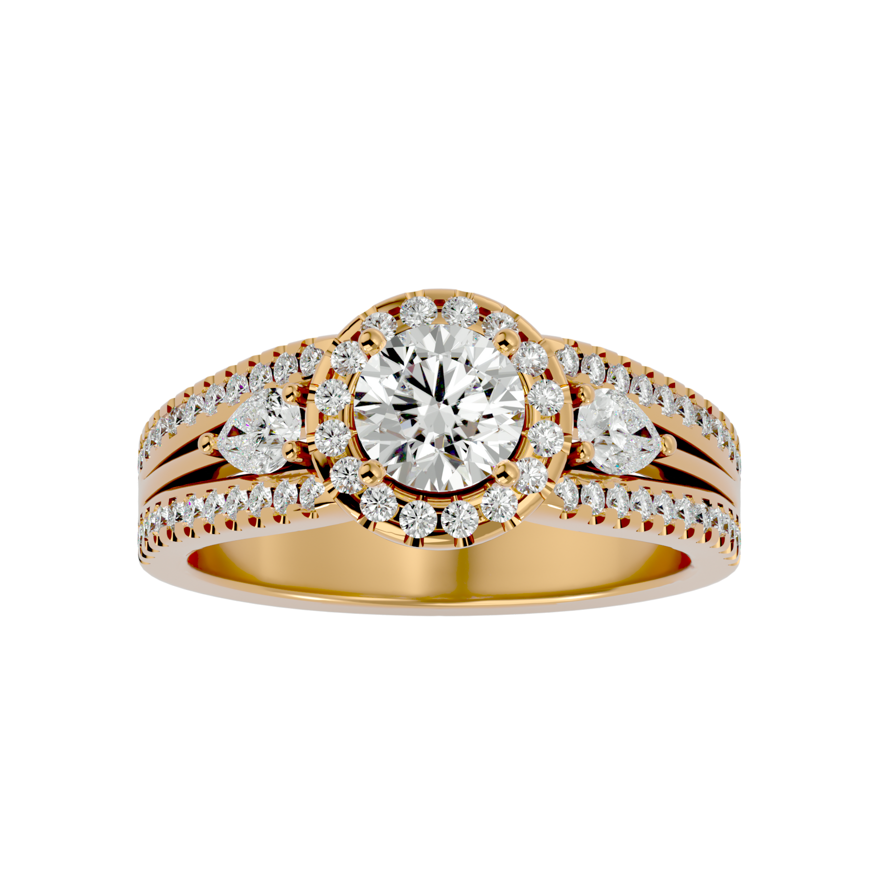 Alisha Three Stone Ring brings a touch of luxury to your everyday attire, infusing it with creative elegance. Crafted with gold and diamonds, it's an ideal accessory for any occasion.