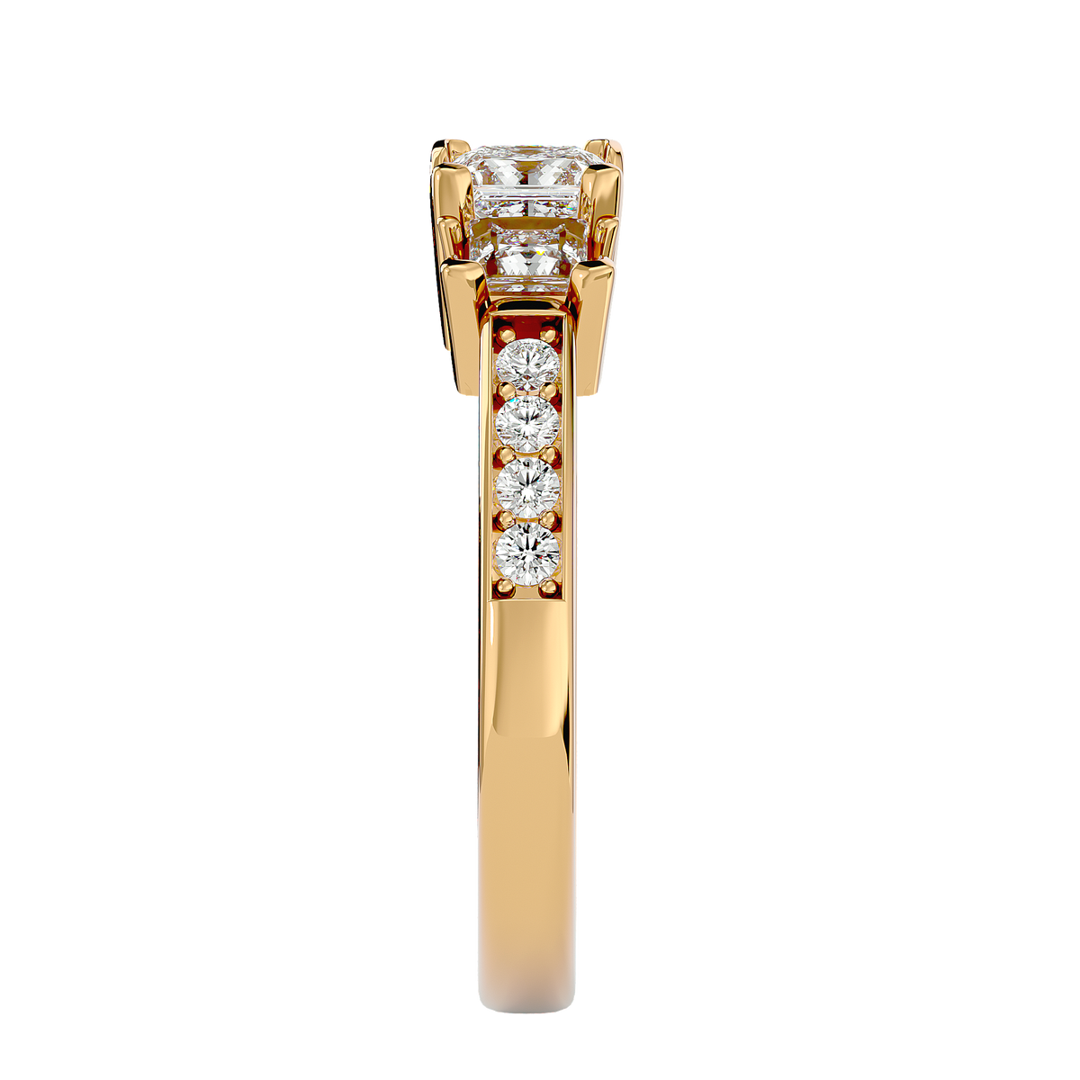 Tenley Three Stone Ring brings a touch of luxury to your everyday attire, infusing it with creative elegance. Crafted with gold and diamonds, it's an ideal accessory for any occasion.
